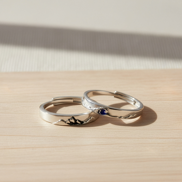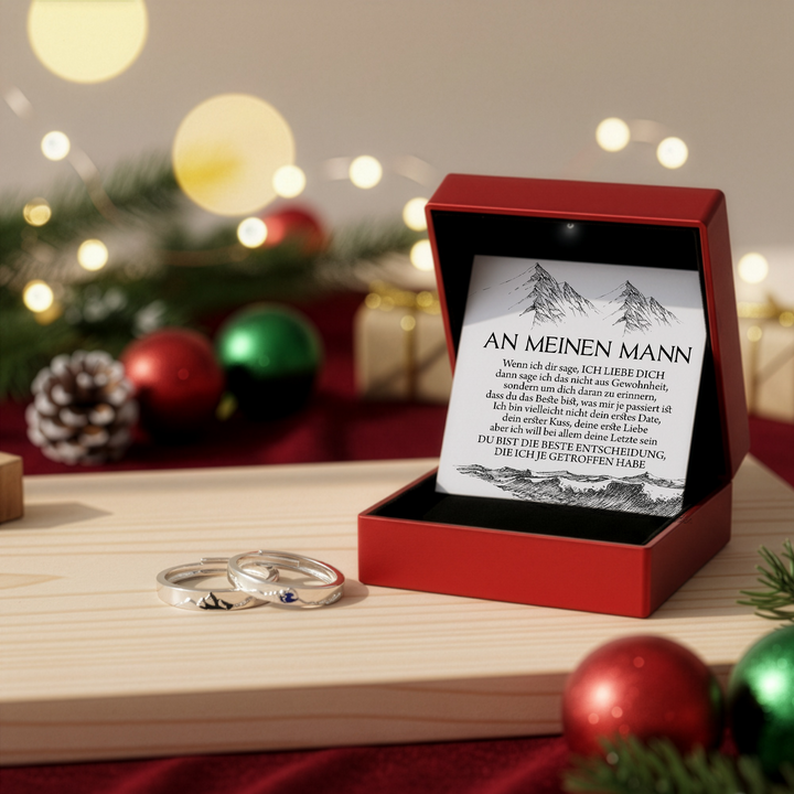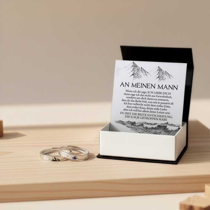 Auf der Suche nach einer besonderen Familie Geschenkidee für Ihren Freund / Zukünftigen Ehemann / Ehemann zum Geburtstag, Valentinstag, Jubiläum, Weihnachten, Erntedankfest usw.? Etwas Einzigartiges, Stilvolles und Bedeutungsvolles? Wie wäre es mit einem Bergsee Paar Versprechensring für ihn?