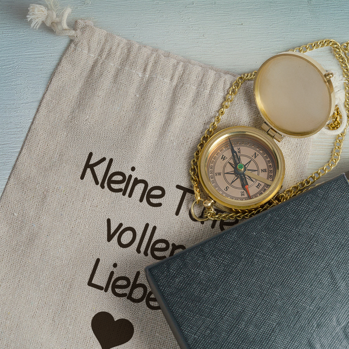 Ein bedeutungsvolles Geschenk verdient eine besondere Verpackung. Diese Stoff-Geschenktüte ist speziell für den gravierten Kompass entworfen – so wirkt Ihr Geschenk komplett, ganz ohne zusätzliches Einpacken.