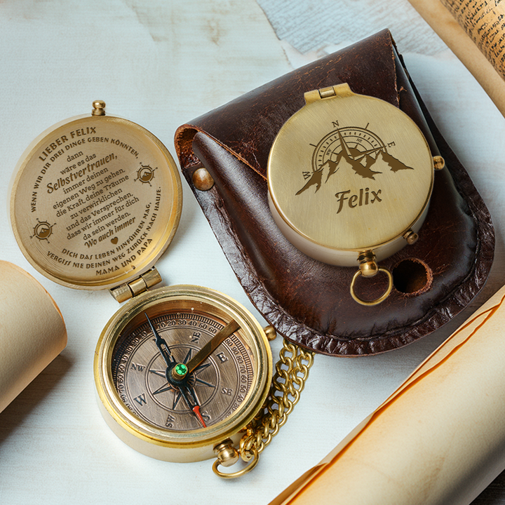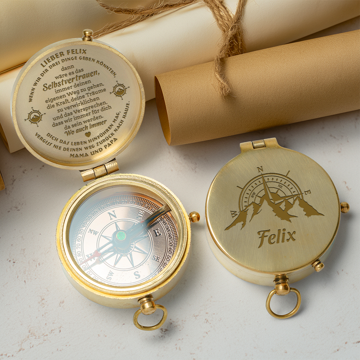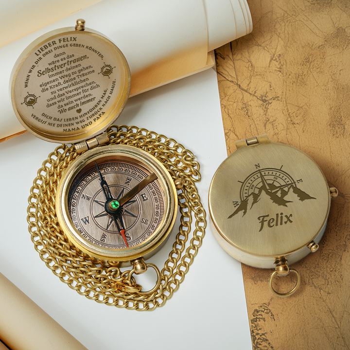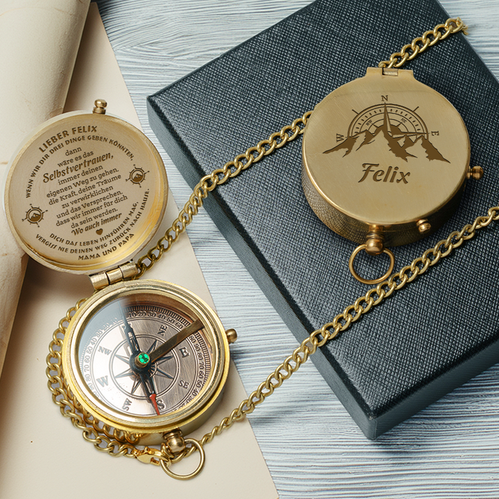 Dieser altmodische Kompass besteht aus langlebigem Messingmaterial und wurde sorgfältig poliert, um ihn zum Glänzen zu bringen. Die auf dem Kompass wunderschön lasergravierte Nachricht wurde speziell für Sie entworfen, um Ihre Liebe auf die subtilste Weise auszudrücken.