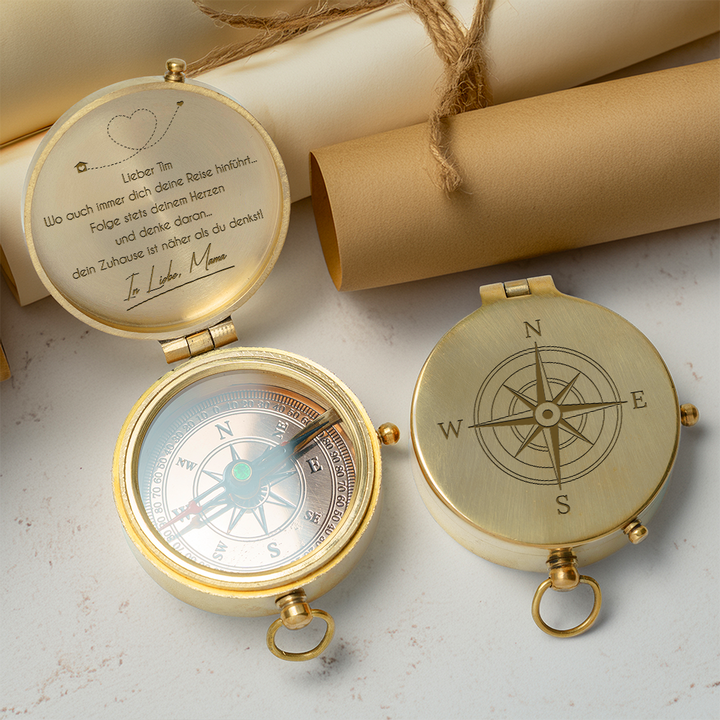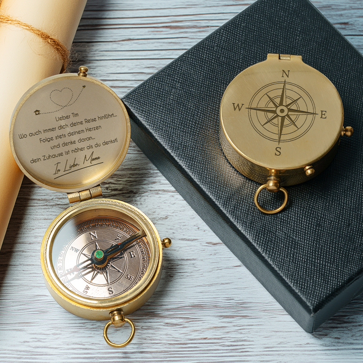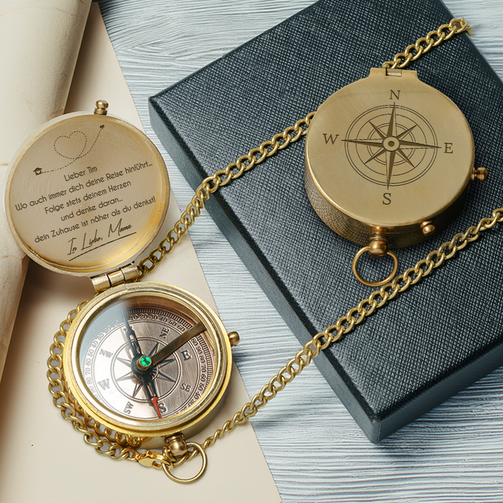 Dieser altmodische Kompass besteht aus langlebigem Messingmaterial und wurde sorgfältig poliert, um ihn zum Glänzen zu bringen. Die auf dem Kompass wunderschön lasergravierte Nachricht wurde speziell für Sie entworfen, um Ihre Liebe auf die subtilste Weise auszudrücken.