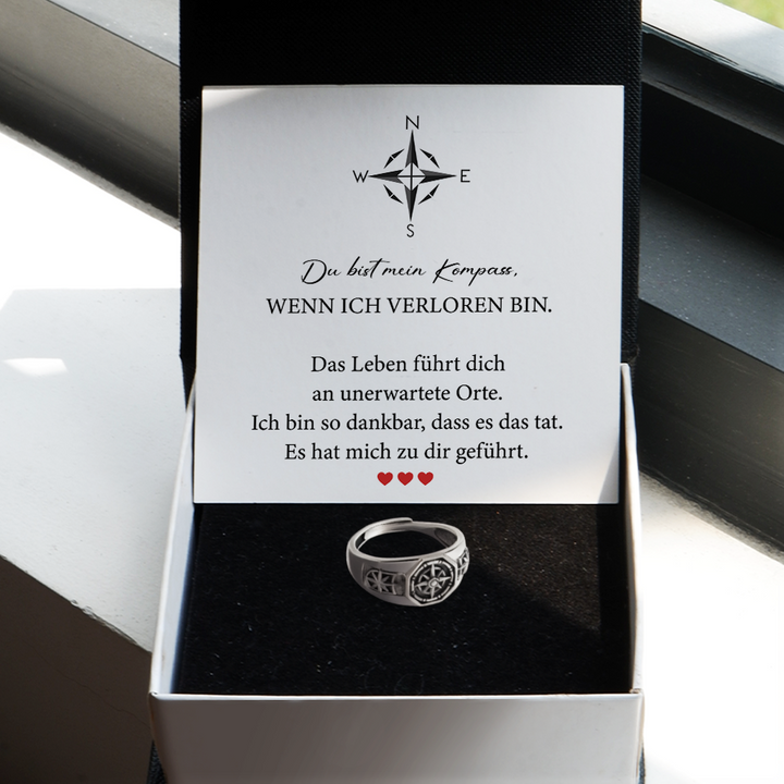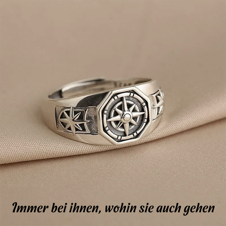 Dieser wunderschön gearbeitete Kompass-Ring ist mehr als nur Schmuck - er ist ein Symbol für Orientierung, Stärke und Verbundenheit.