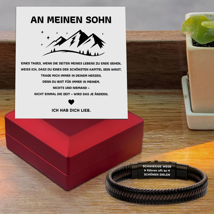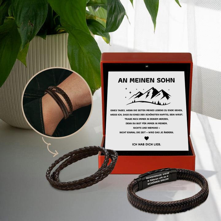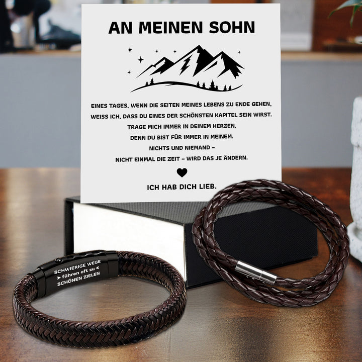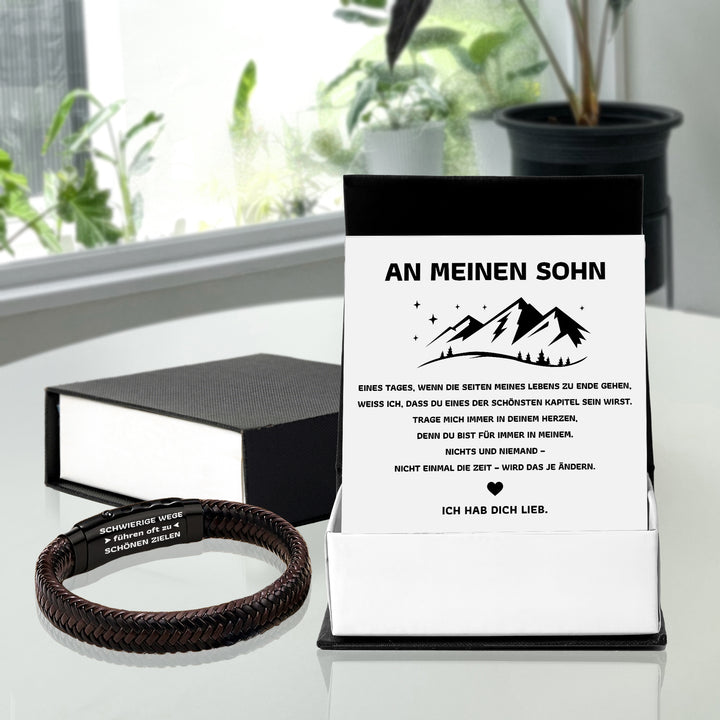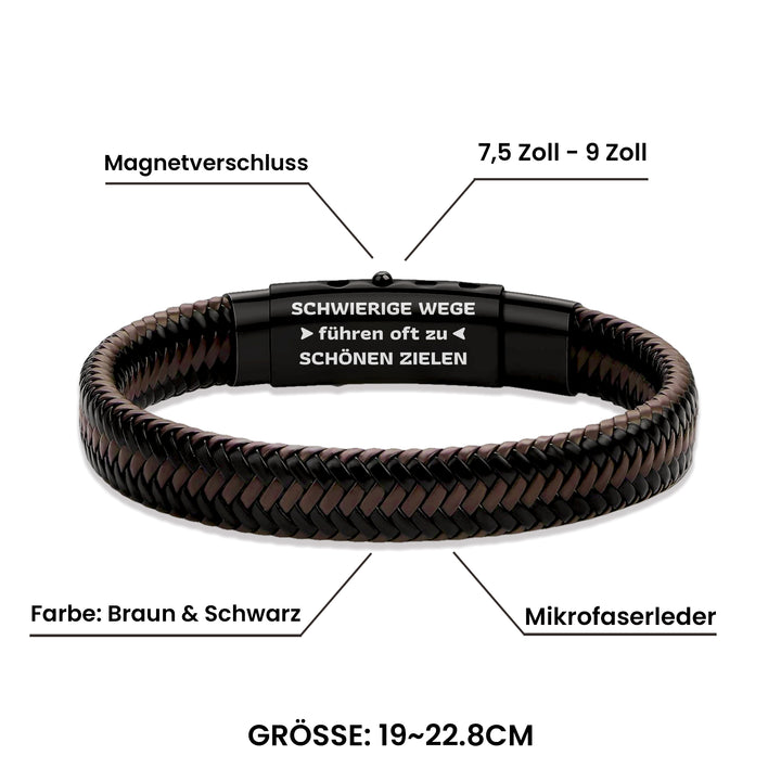 Personalisiert Braunes Geflochtenes Lederarmband - Familie - An Meinen Sohn - Schwierige Wege Führen Oft Zu Schönen Zielen - Degbzu16004