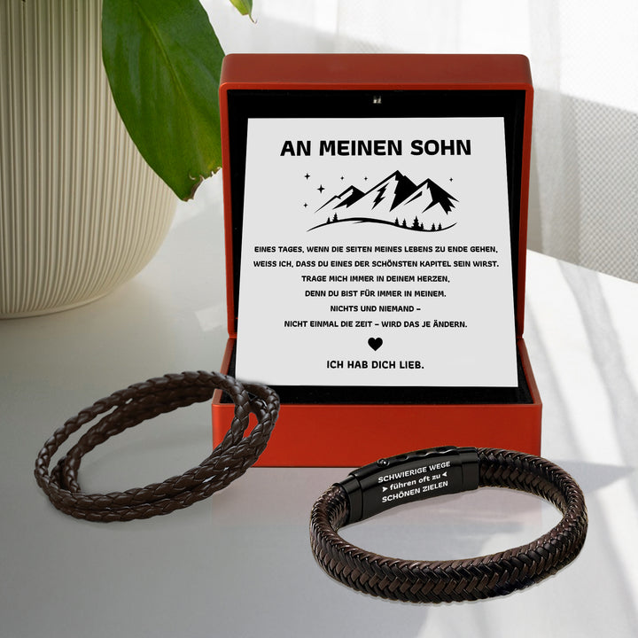 Schenken Sie Ihrem Sohn ein Geschenk, das Bände spricht – ein robustes Lederarmband, das er mit Stolz jahrelang tragen wird. Mehr als nur ein Accessoire, ist dieses Armband ein Symbol Ihrer unendlichen Liebe und ein Andenken, das er für immer schätzen wird.