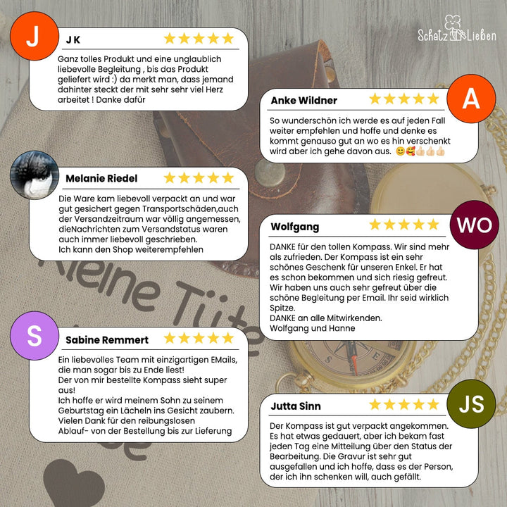 Bei unseren handgefertigten Kompassen sind kleine Kratzer oder Oberflächenabweichungen aufgrund der Handarbeit möglich. Diese Unvollkommenheiten sind normal und beeinträchtigen die Leistung nicht.