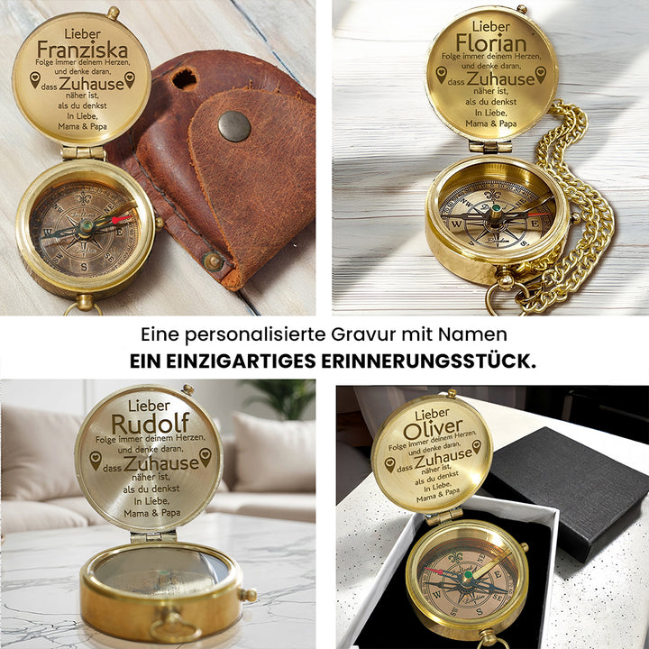 Dieser altmodische Kompass besteht aus langlebigem Messingmaterial und wurde sorgfältig poliert, um ihn zum Glänzen zu bringen. Die auf dem Kompass wunderschön lasergravierte Nachricht wurde speziell für Sie entworfen, um Ihre Liebe auf die subtilste Weise auszudrücken.
