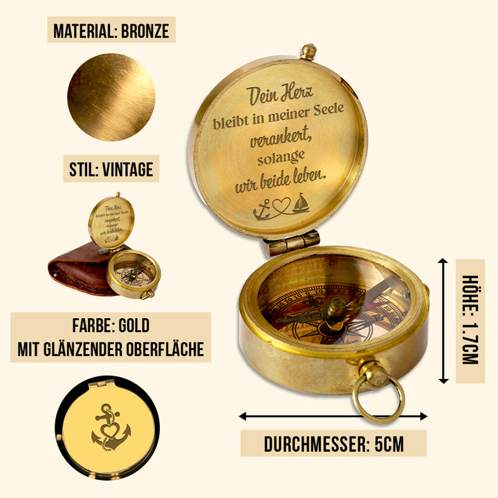 Personalisierter Gravierter Kompass - Familie - An Meinen Liebsten - Dein Herz Bleibt In Meiner Seele Verankert - Degpb26110