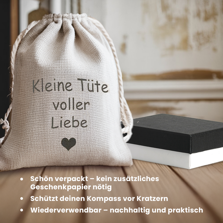 Bei unseren handgefertigten Kompassen sind kleine Kratzer oder Oberflächenabweichungen aufgrund der Handarbeit möglich. Diese Unvollkommenheiten sind normal und beeinträchtigen die Leistung nicht.