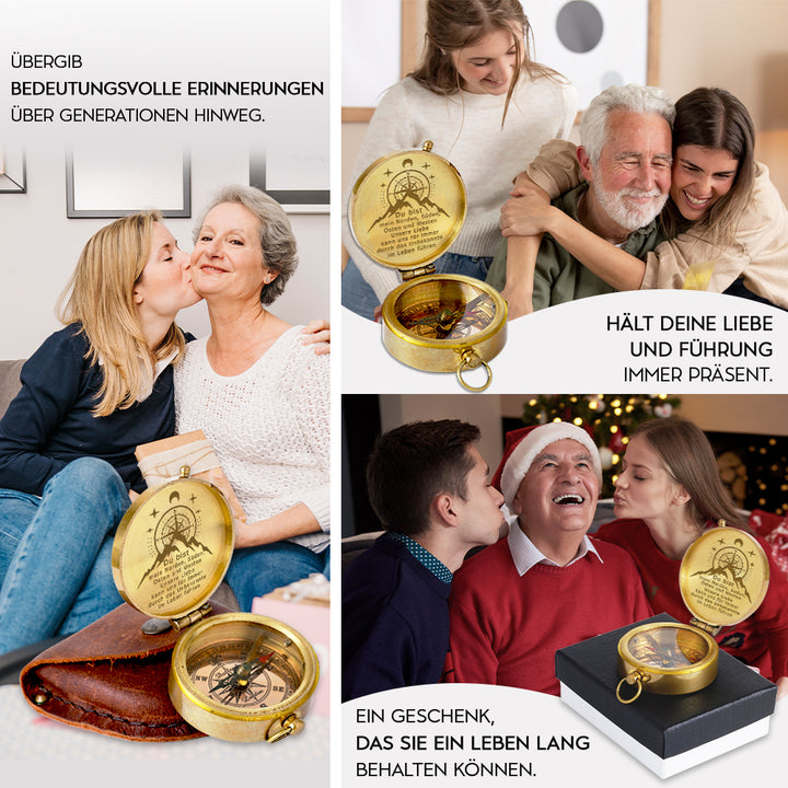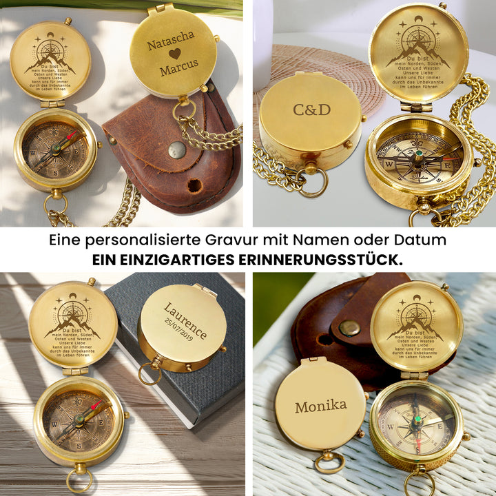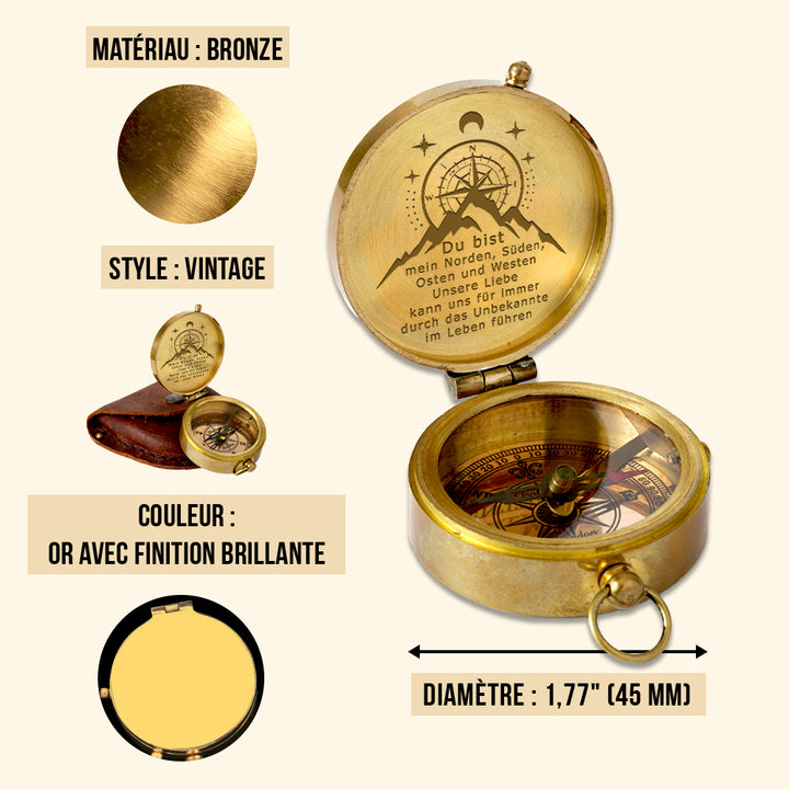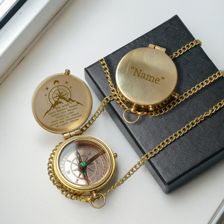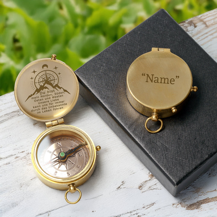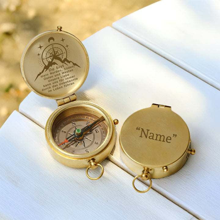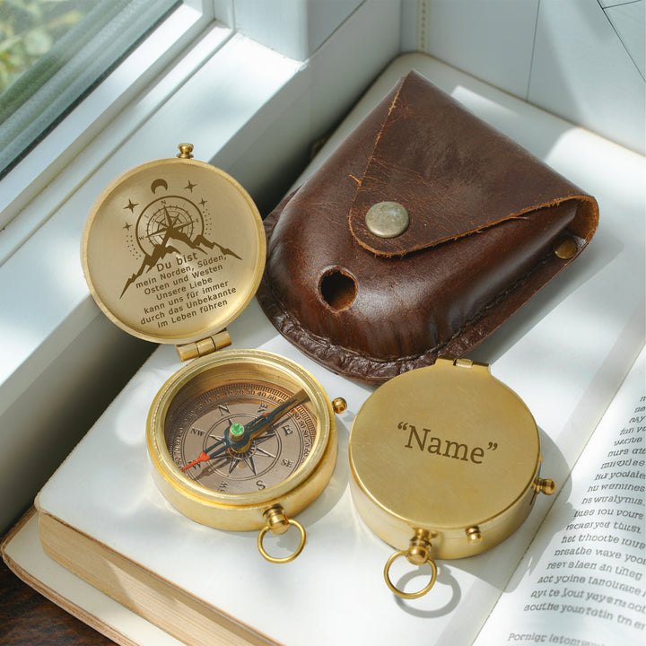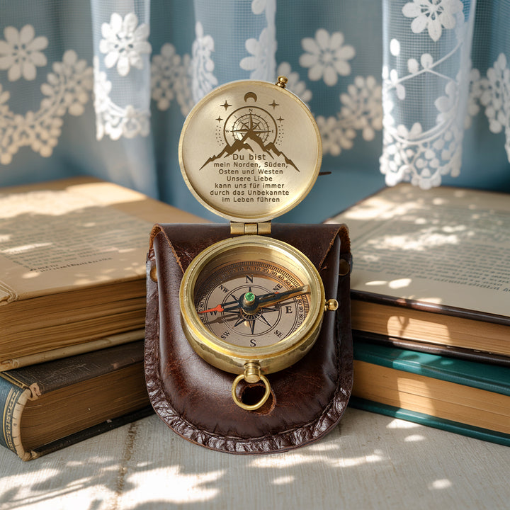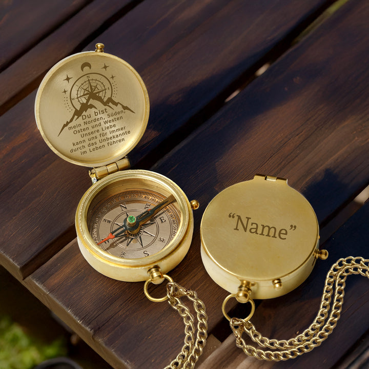 Dieser altmodische Kompass besteht aus langlebigem Messingmaterial und wurde sorgfältig poliert, um ihn zum Glänzen zu bringen. Die auf dem Kompass wunderschön lasergravierte Nachricht wurde speziell für Sie entworfen, um Ihre Liebe auf die subtilste Weise auszudrücken.