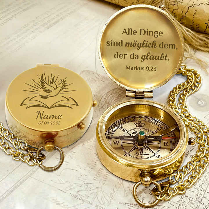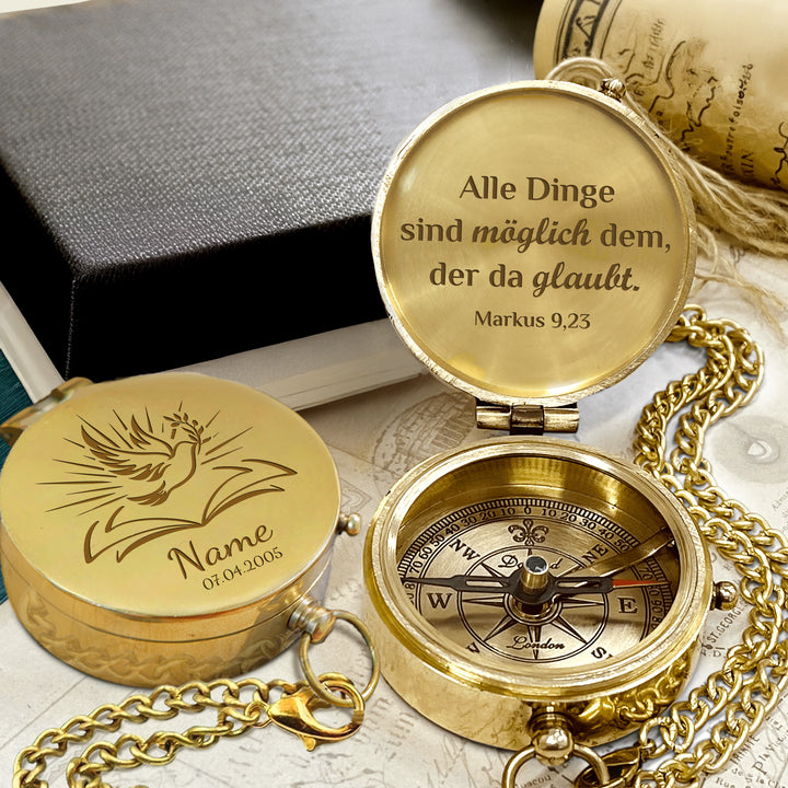 Personalisierter Kompass Zur Taufe & Kommunion - Für Sohn Tochter Enkelin Enkel - Alle Dinge Sind Möglich Dem, Der Da Glaubt - Degpb16257