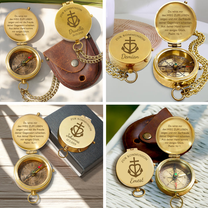 Personalisierter Kompass Zur Taufe & Kommunion - Für Sohn Tochter Enkelin Enkel - Aus Deiner Hand Kommt Mir Ewiges Glück - Degpb16258