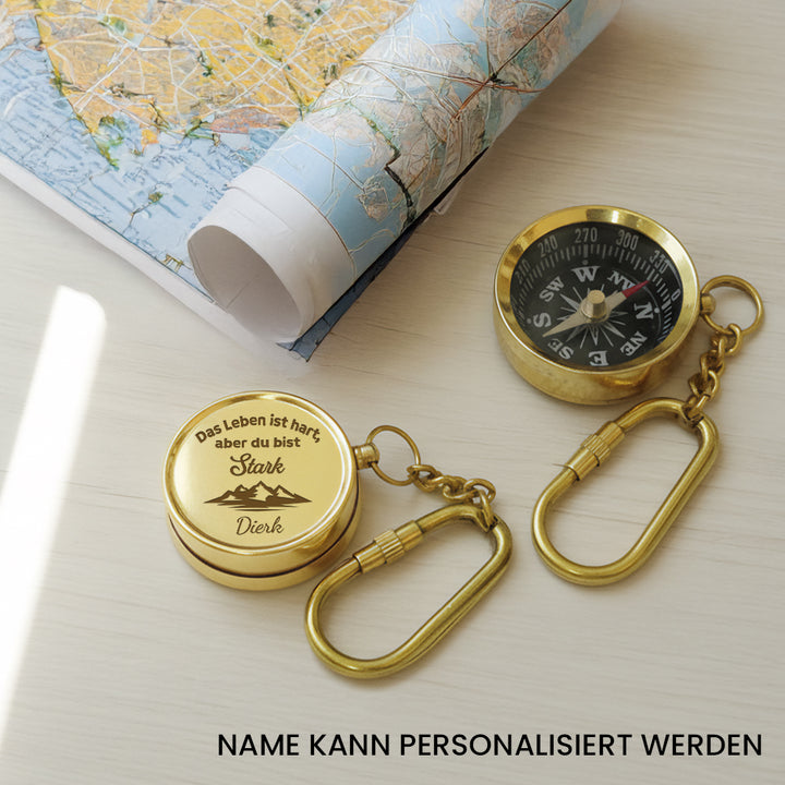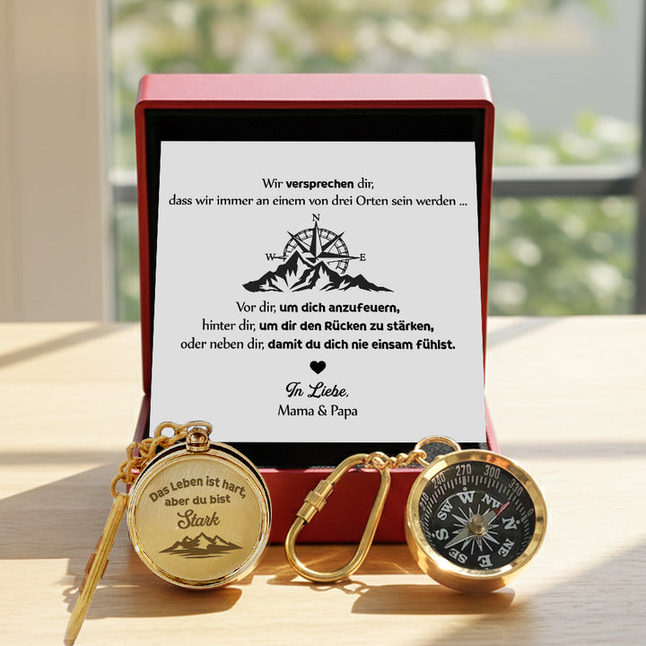 Personalisierter Mini-Kompass-Schlüsselanhänger - Familie - Für Sohn Tochter - Das Leben Ist Hart, Aber Du Bist Stark - Degkqj16006