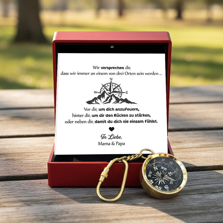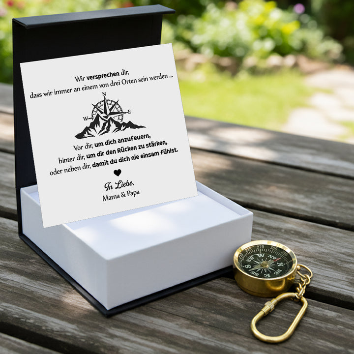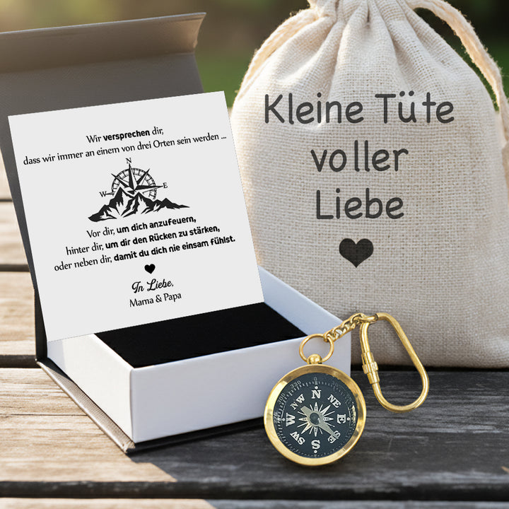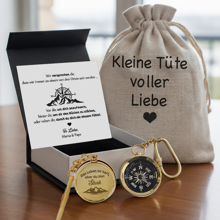 Dieser gravierte Kompass-Schlüsselanhänger aus Messing ist mehr als nur ein Geschenk – er ist ein Symbol für Liebe, Orientierung und bleibende Erinnerungen. Ein zeitloses Andenken, das Ihr Kind ein Leben lang begleitet – als Erinnerung daran, woher sie kommen und wer immer an sie glaubt.