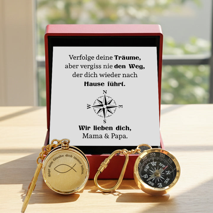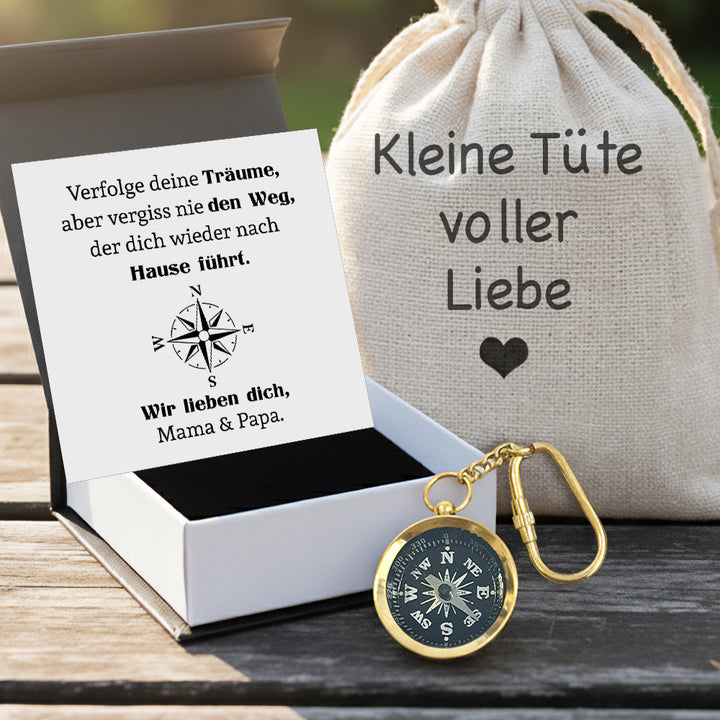 Personalisierter Mini-Kompass-Schlüsselanhänger - Familie - Für Sohn Tochter - Verfolge Deine Träume - Degkqj16003